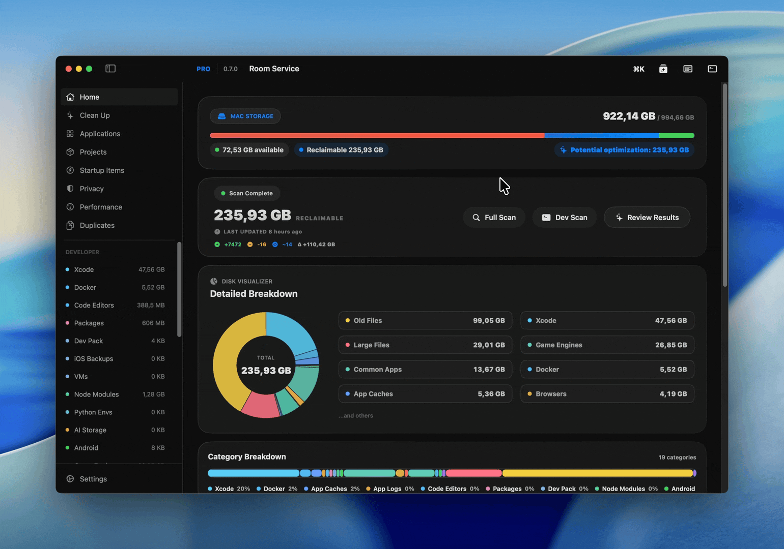 In OptiClear, I built the Large & Aging Files analyzer specifically to hunt these down. It's often forgotten .dmg installers from 2 years ago or massive log files that serve no purpose.