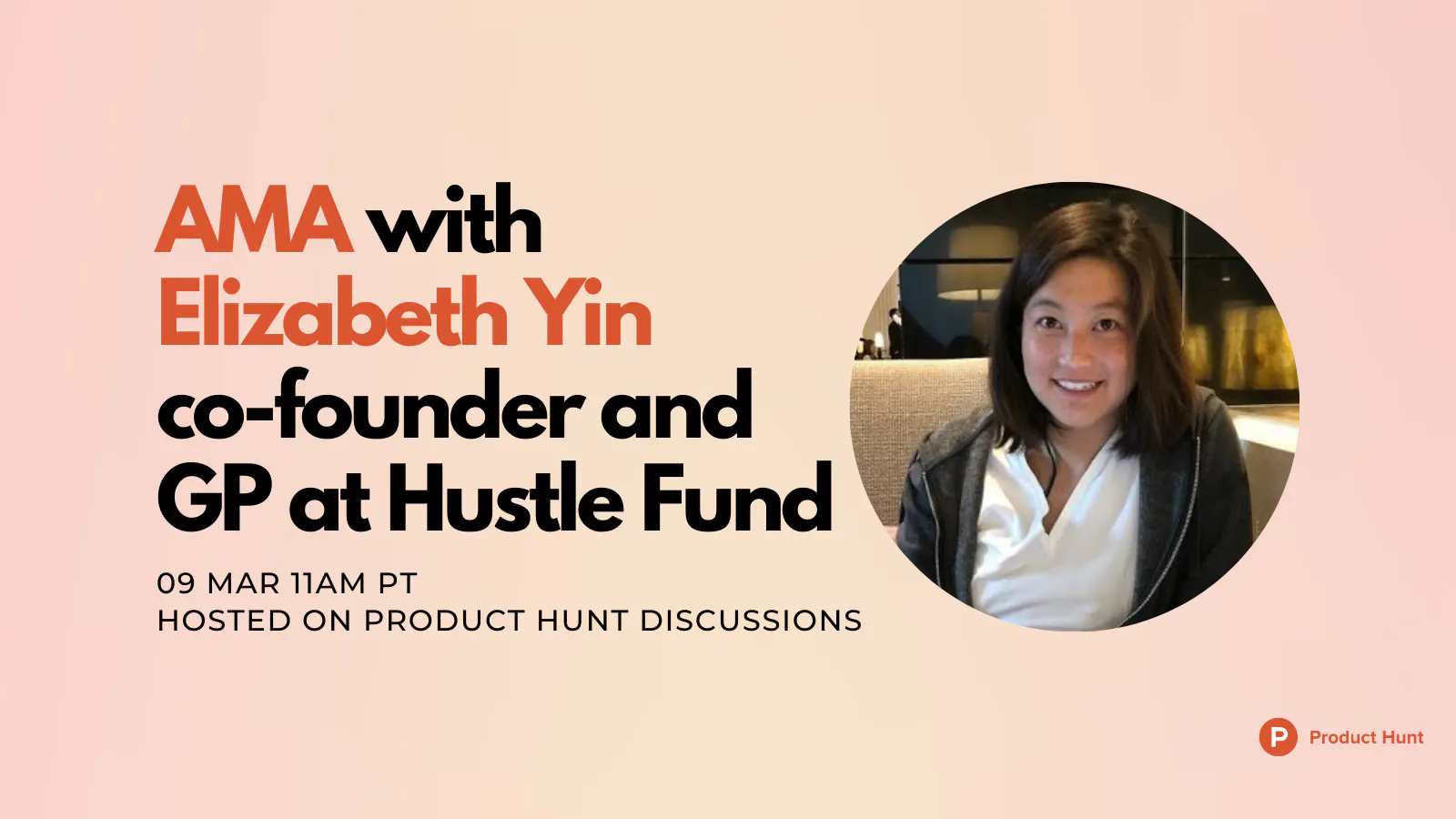 Post your questions ASAP for Elizabeth Yin, co-founder of the pre-seed fund for software entrepreneurs, Hustle Fund.