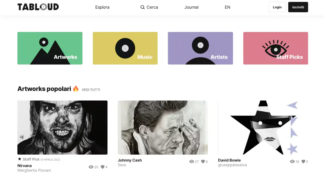 - Do you stan Bowie? Tabloud is a fun new community and music gallery. Artists can post their music-inspired work and musicians can make verified pages and collections.