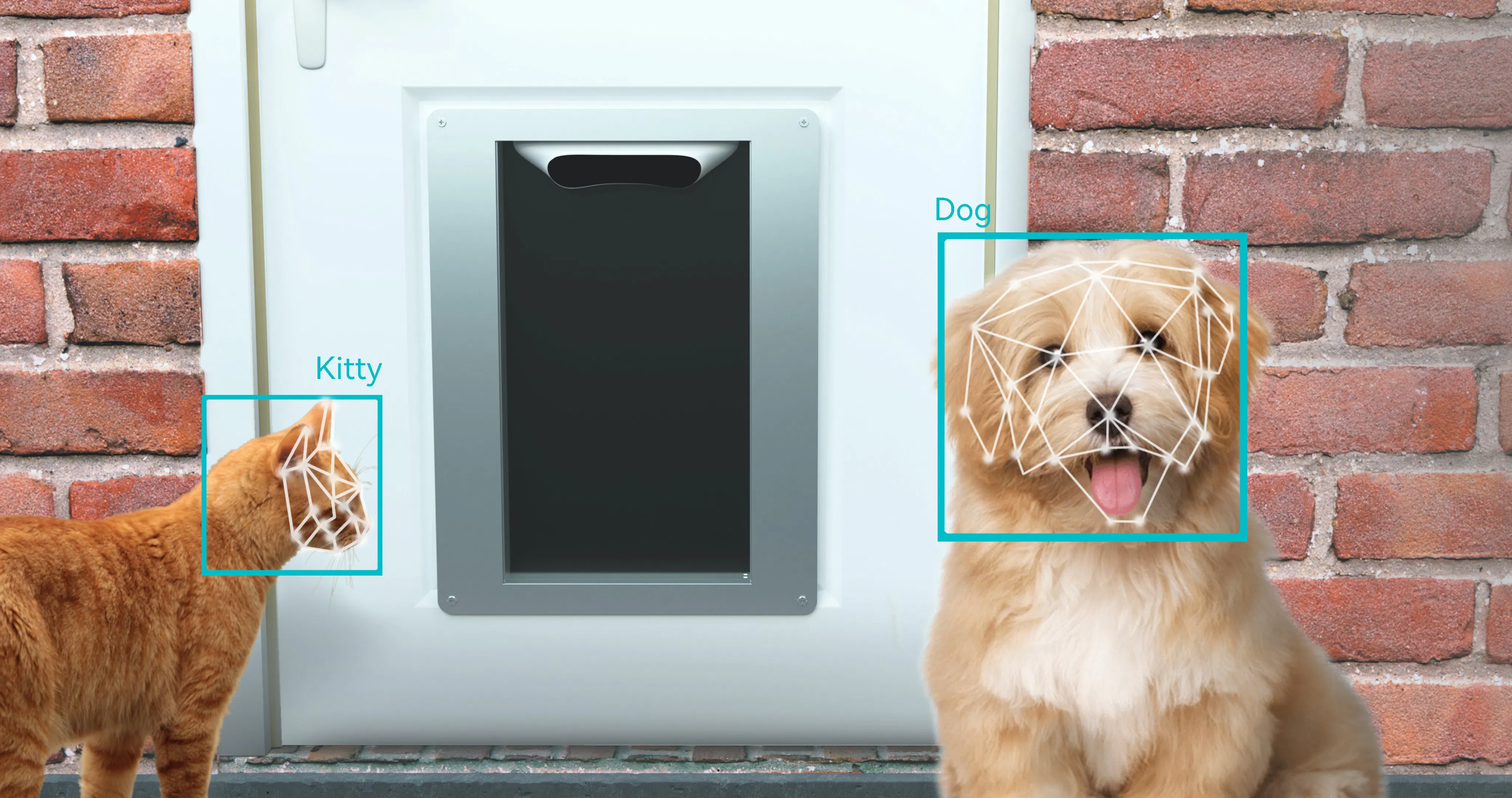 The Pervation AI-powered pet door uses face recognition to identify your kitty or pup, giving them access to enter your home, and closing off to other animals.