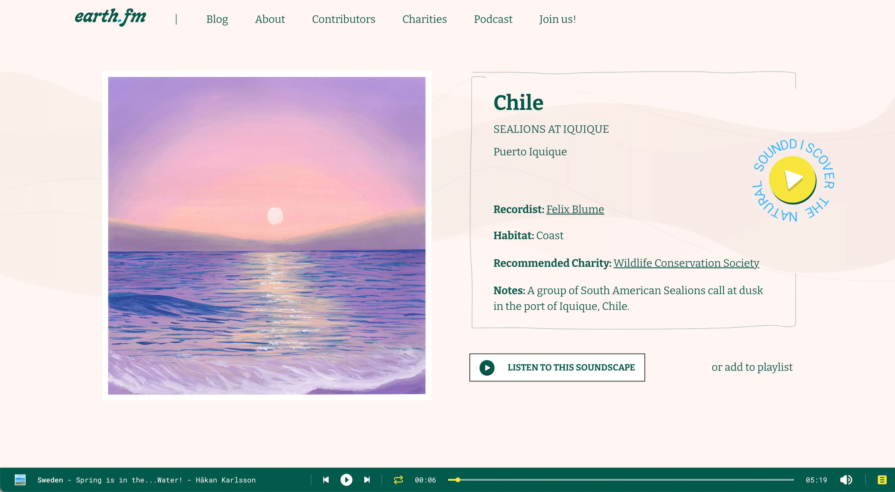 Earth.fm is a non-profit library of curated, immersive nature sounds from around the world. Its interactive map takes you from listening to penguin colonies in Argentina to waves hitting the shores of New Zealand.