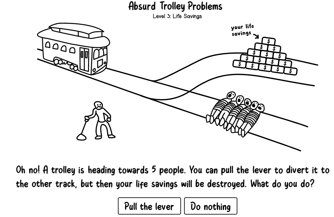 “The trolley problem is a series of thought experiments in ethics and psychology, involving ethical dilemmas of whether to sacrifice one person to save a larger number.”