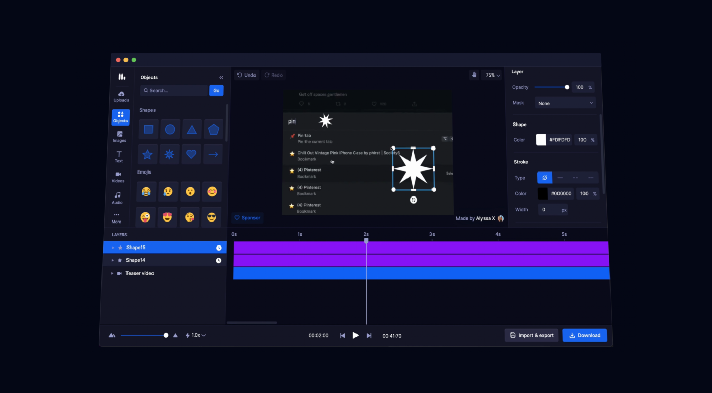 Serial maker Alyssa X launched Motionity, an open-source animation editor on web. It's a mix of After Effects and Canva, with features like keyframing, masking, and filters.