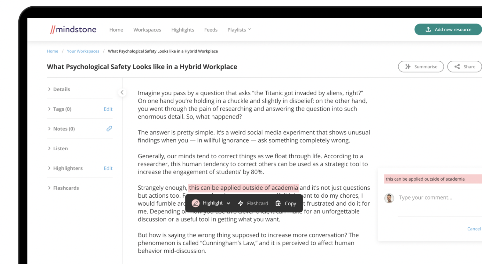Maker Joshua Wöhle wanted to solve this problem, so he created Mindstone, a way to consume content and learn from it. Users can save articles, podcasts, and videos to Mindstone for later and then extract key insights, generate automated summaries, and highlight important passages.