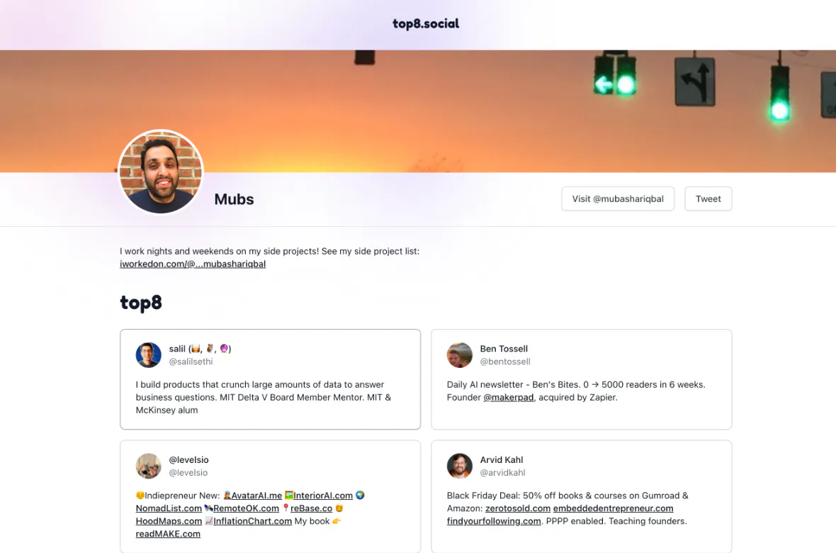 Reviving Myspace Top 8! top8.social helps you share your favorite Twitter users and show who you are thankful for.