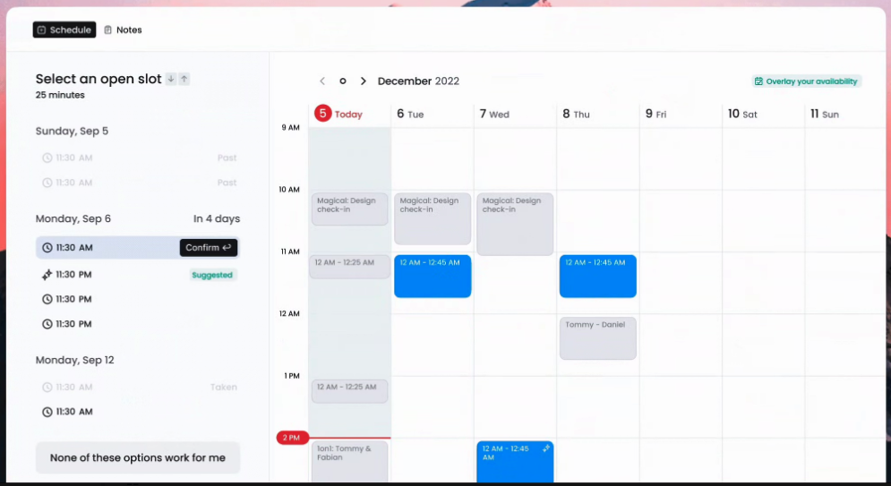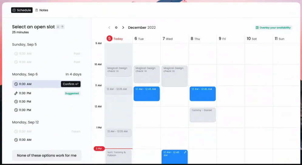 - Magical’s AI-powered calendar invitations show your preferred availability with automated agendas.