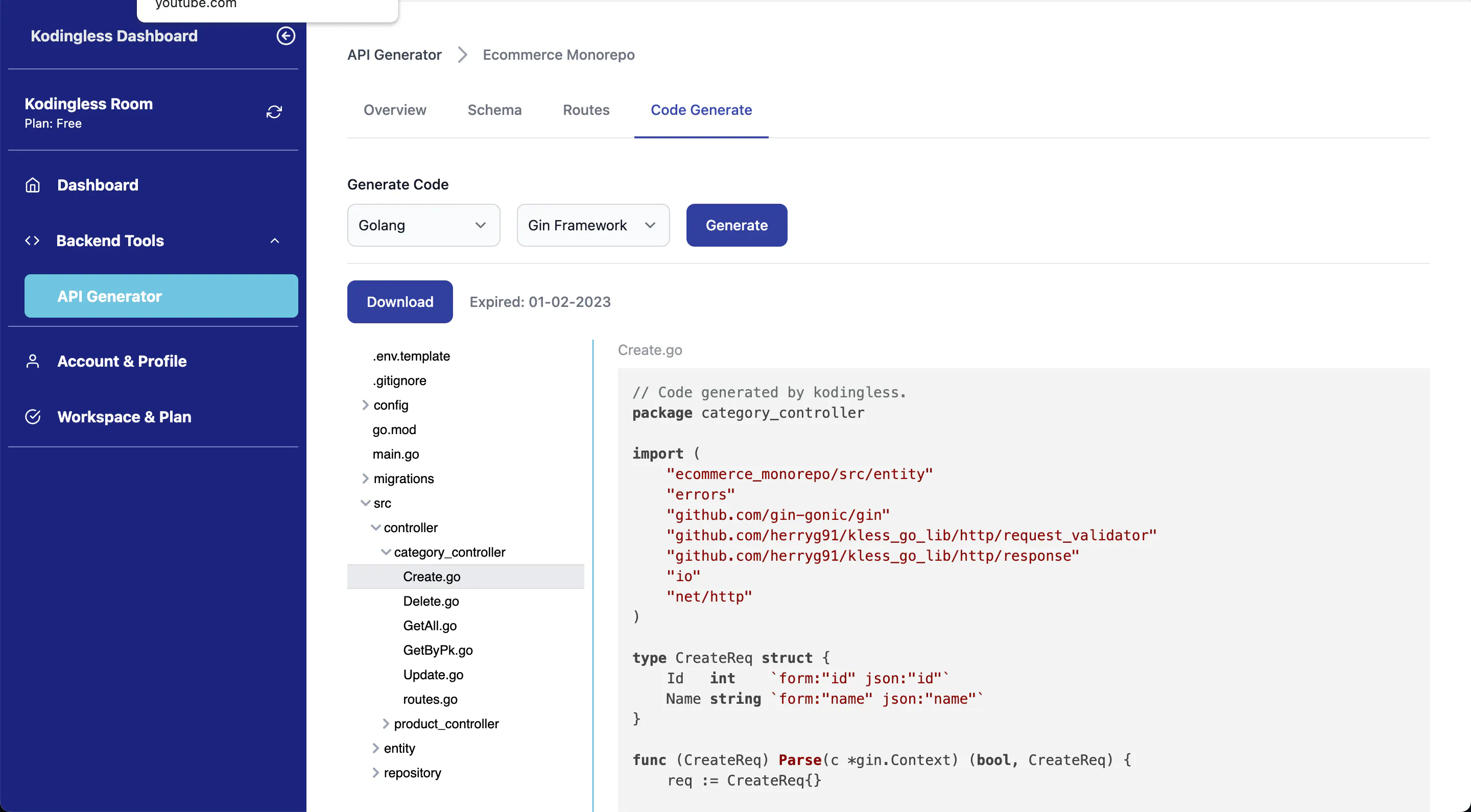 Database schema to backend API code