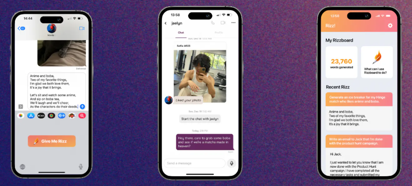 Rizz has a keyboard extension that lets you incorporate AI responses or recommendations into any app. The standalone Rizz app lets you keep track of your copy responses to reuse and refine messages.