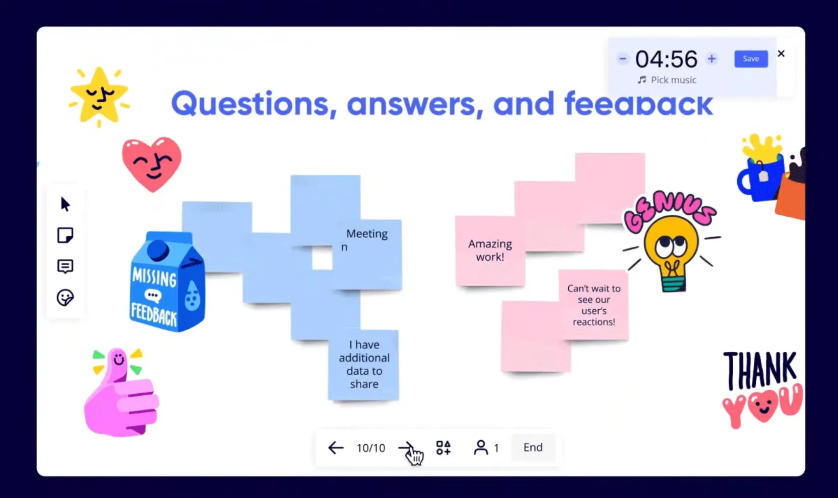 - Interactive Presentations by Miro allows for two-way presentations, audience reactions, and built-in activity apps to drive engagement.