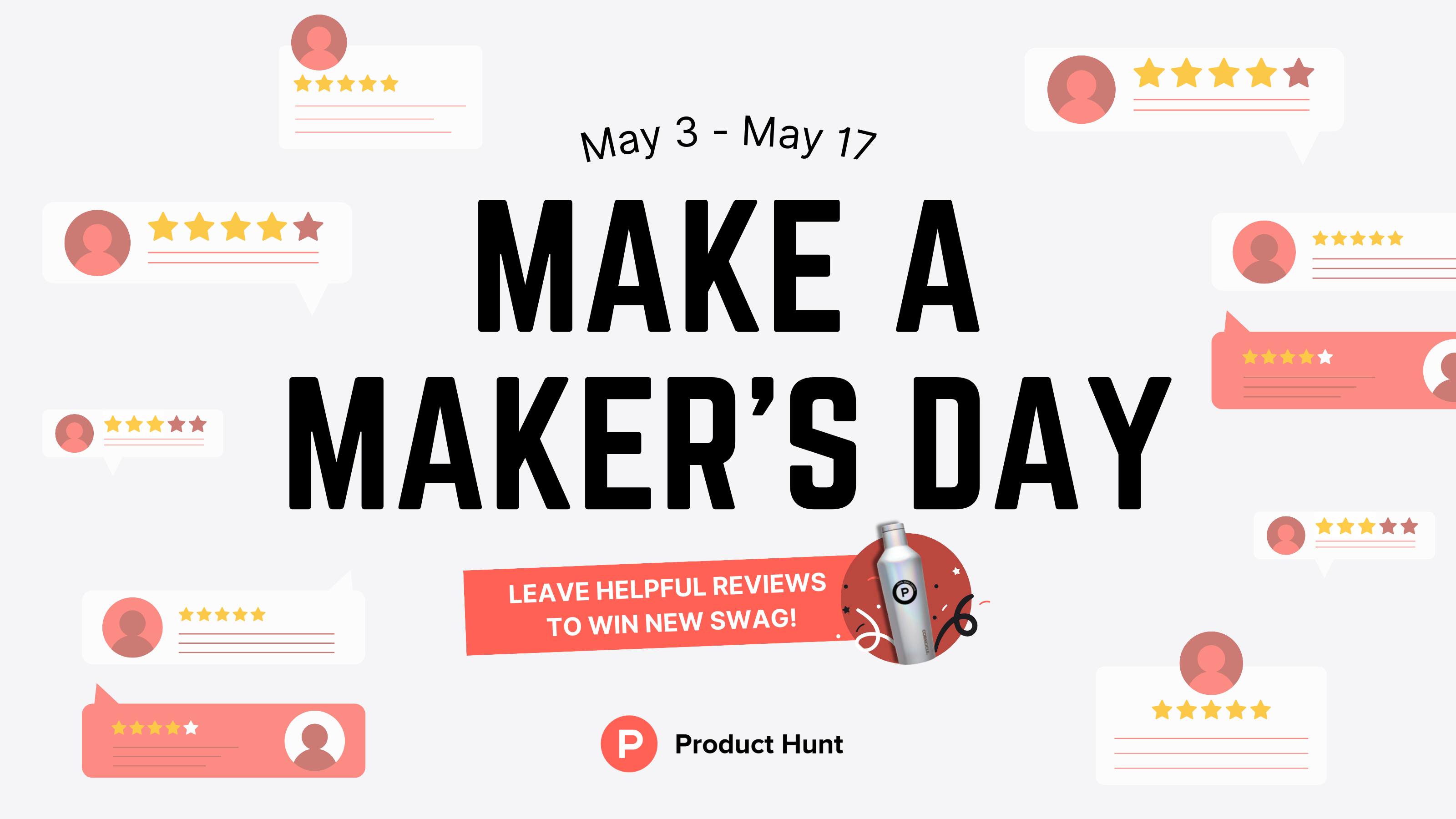 As a small token of appreciation for the time you take to provide makers with your input, for the next two weeks, your reviews will enter you to win shiny, new Product Hunt swag.