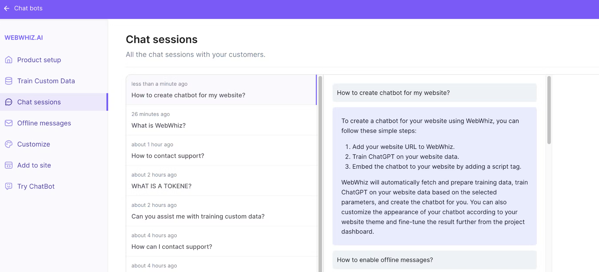 WebWhiz is an open-source, custom ChatGPT bot for your site.Â