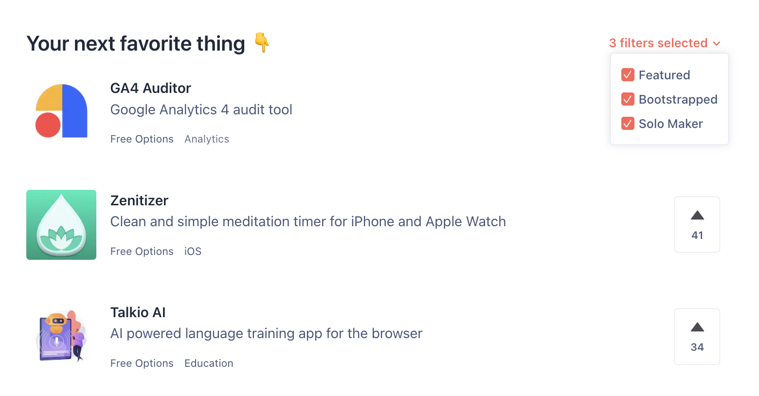 In line with our mission to amplify the impact of talented makers worldwide, we’ve launched two new homepage filters specifically for solo and bootstrapped projects.