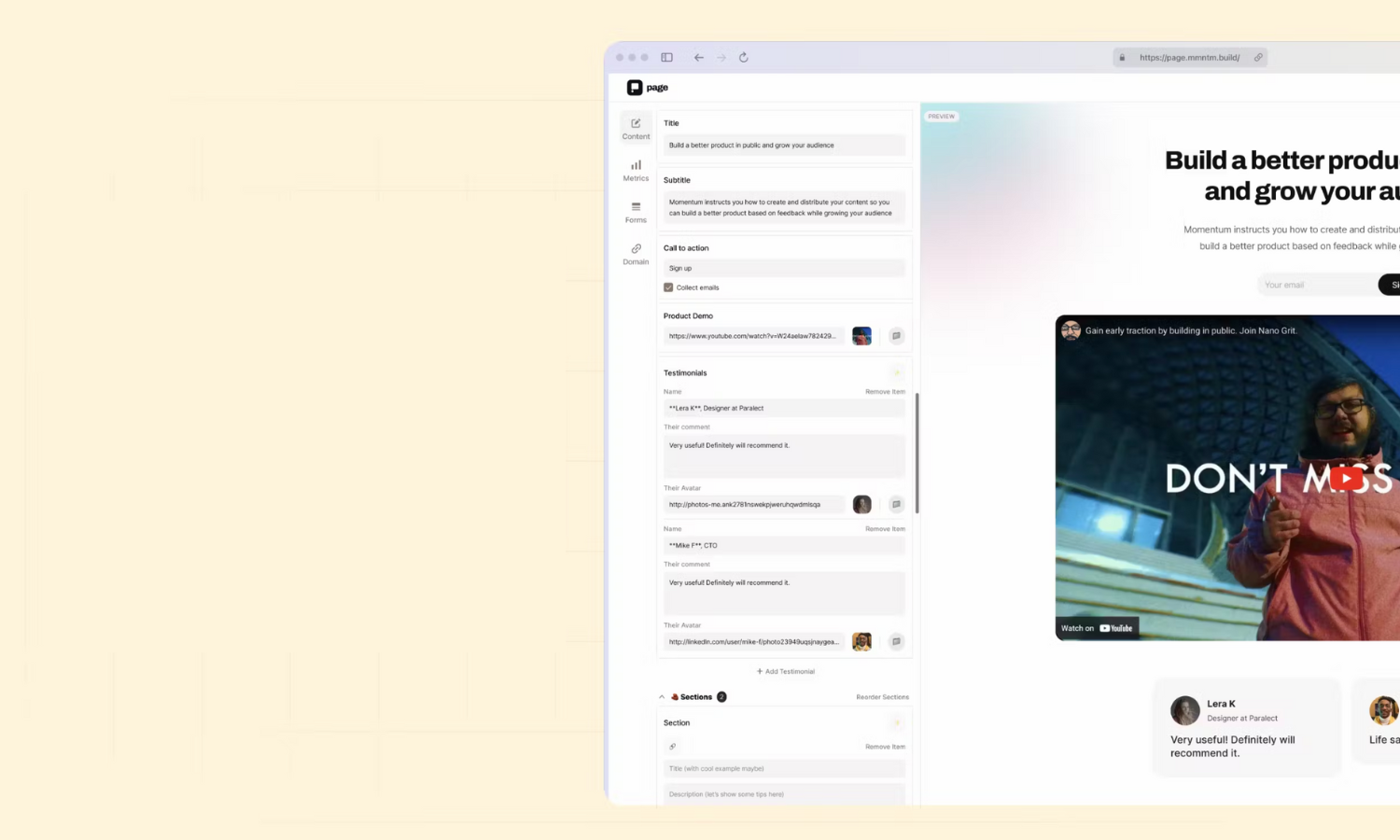 Momentum Page is a no-code site builder designed to help you ship faster.