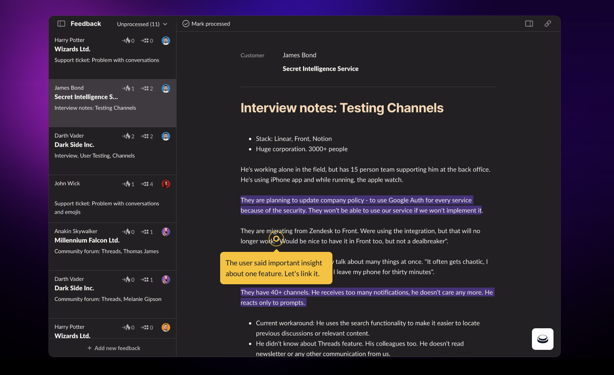 - Specific helps identify patterns and pinpoint the real issues behind users’ feature requests.