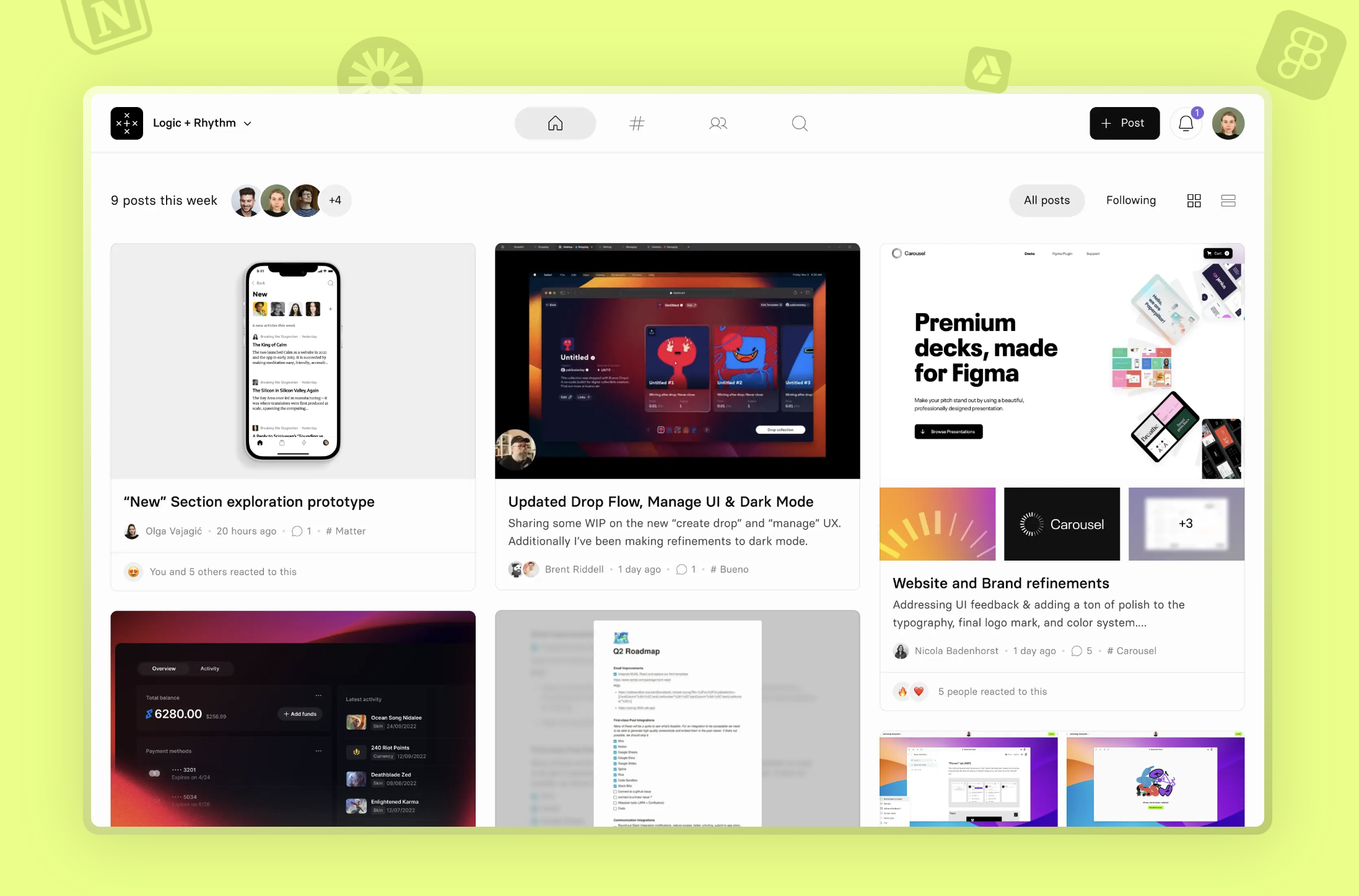 What? Think of it like a newsfeed for work in progress. With Current, you can share, view, and engage with updates from various tools like Figma, Loom, Notion, Miro, Mural, Google Drive, Github, Codepen, Codesandbox, ProtoPie, Rive, and Spline — all in one place.