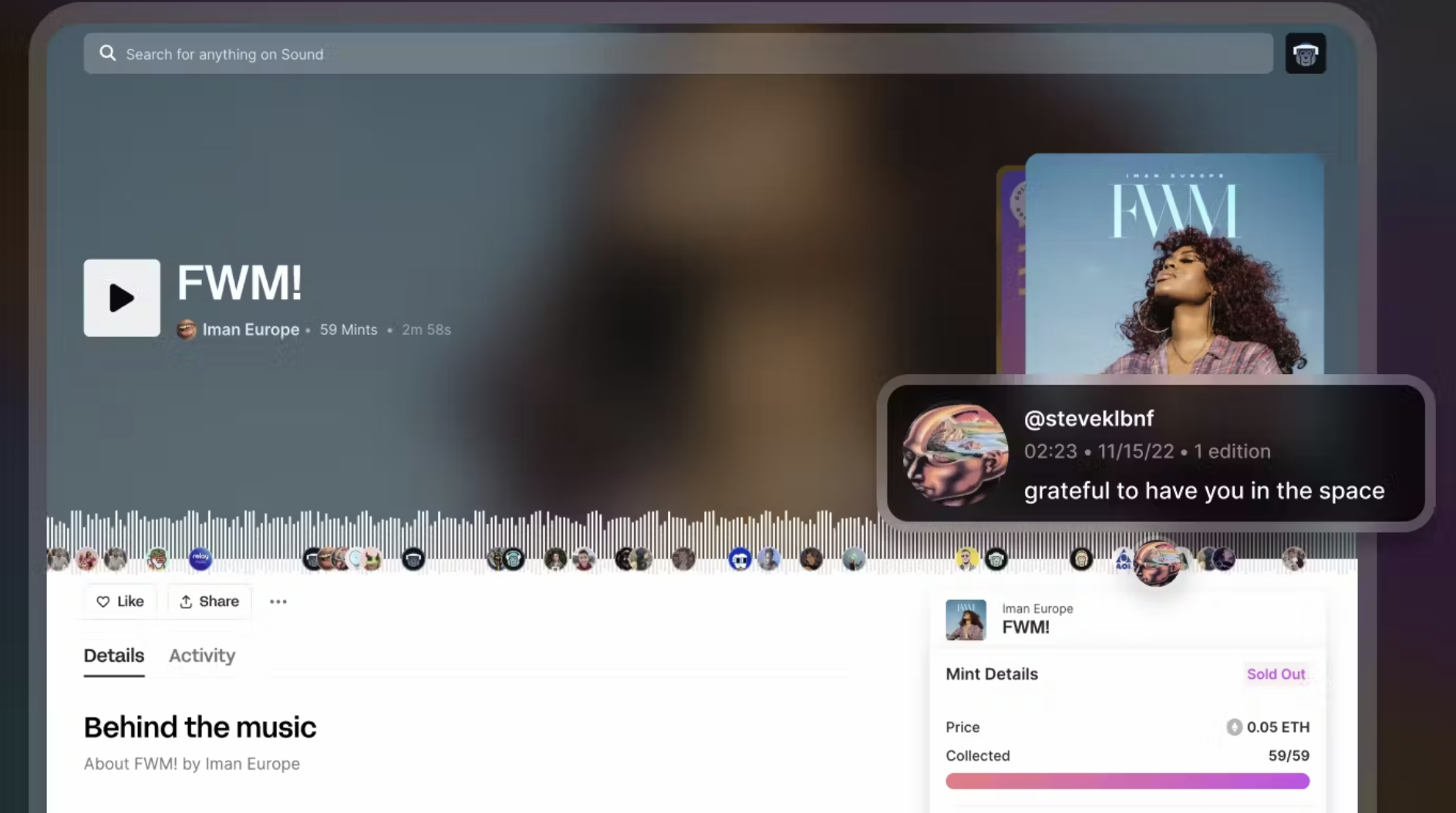 Sound.xyz is a Web3 music player with a focus on artists and their communities.