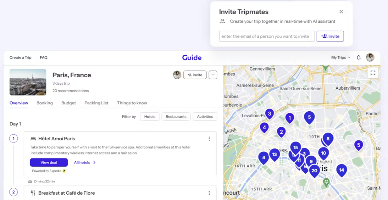 - Guide is an AI-powered bot that helps you plan your next big vacation.