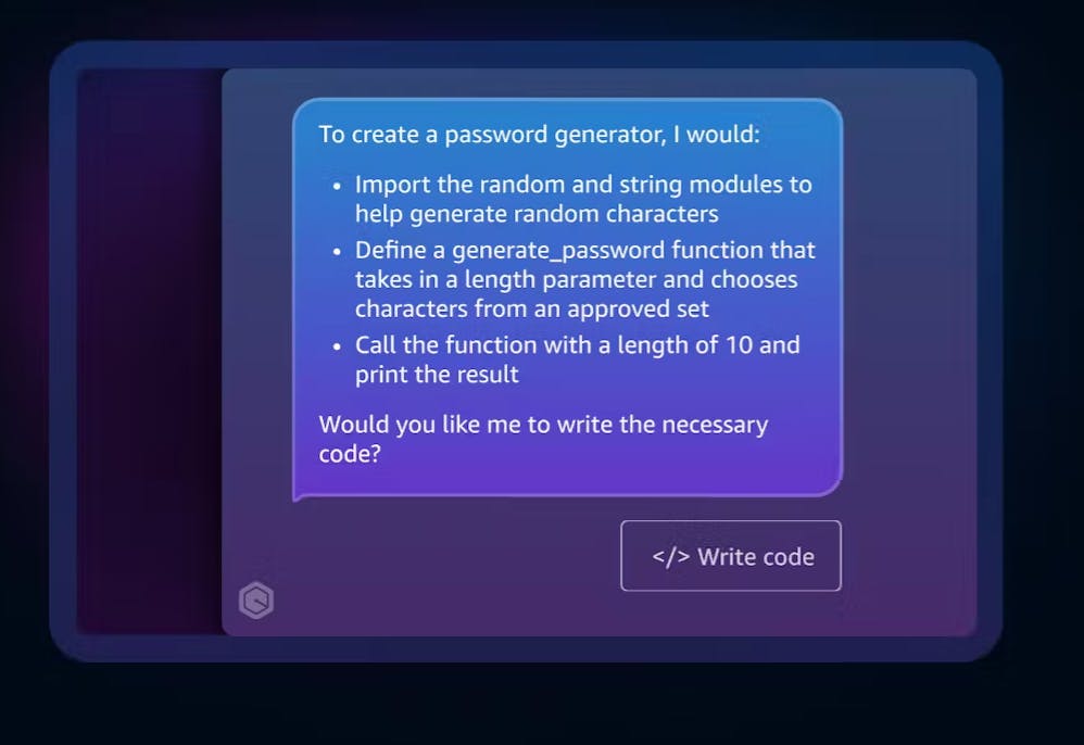 You might have seen Amazonās latest copilot mentioned above. Itās called Q Developer and itās Amazonās answer to GitHub Copilot. It uses AI in much the same way to help make devs lives easier by helping to generate code, debug, test, and deploy apps.