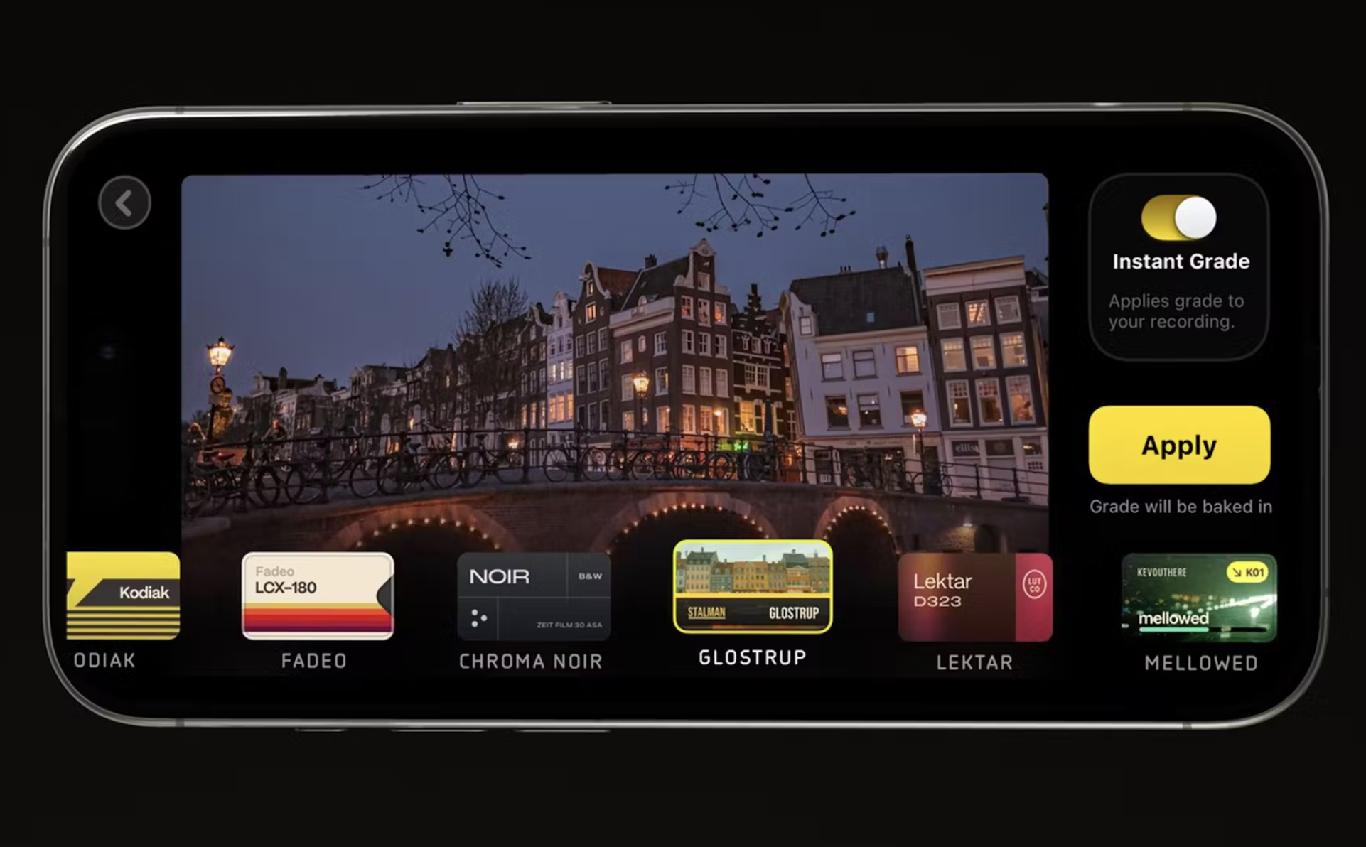 One of Kino’s coolest features is “Instant Grade,” which lets you shoot with grade presets right out of the gate. You can also record in Apple Log format and play with the presets later. Another handy feature is AutoMotion, which automatically picks the best exposure settings for that dreamy cinematic motion blur.