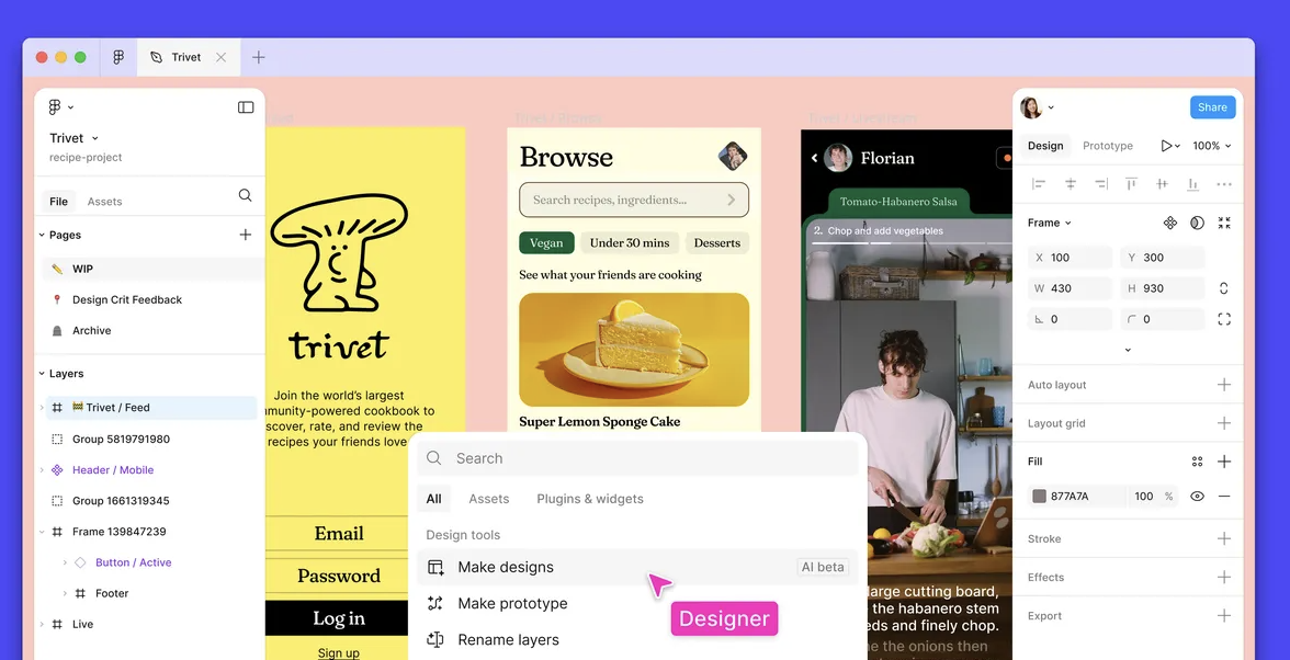 Remember how I said AI was still the star of the show? The headline feature yesterday was arguably Figma AI, a suite of generative AI features that are built to help you design and iterate quickly. Like Framer’s AI option, Figma AI lets you generate an entire prototype for web, mobile, and anything in between with a prompt.