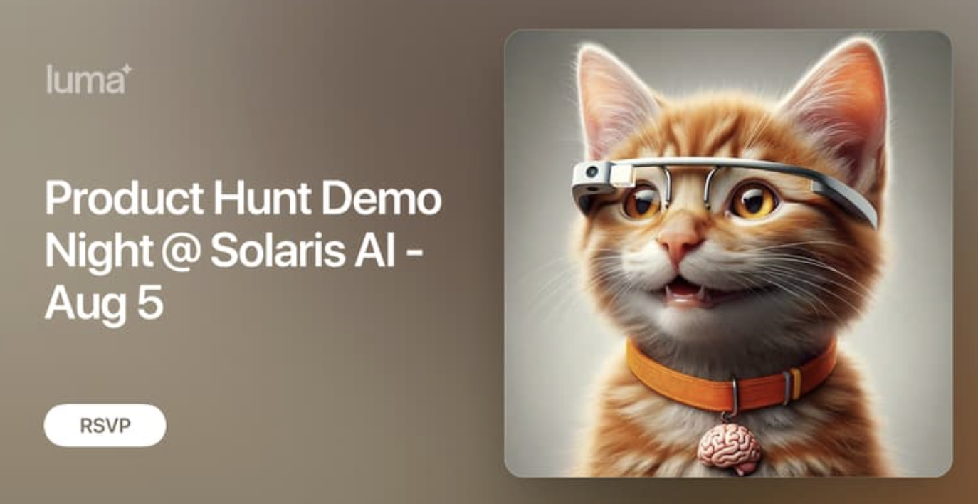Product Hunt and Solaris AI are back with another demo night, right here in San Francisco. Join us tonight at 6.30 pm PT at the Solaris AI offices for a night of amazing demos, food, drink, and networking.