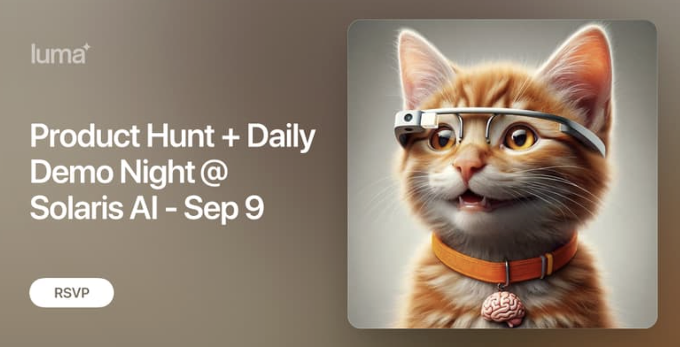 Product Hunt and Solaris AI are back with another demo night, right here in San Francisco. This time around the theme of LLM observability, Join us on September 9th at 6.30 pm PT at the Solaris AI offices for a night of amazing demos, food, drink, and networking.