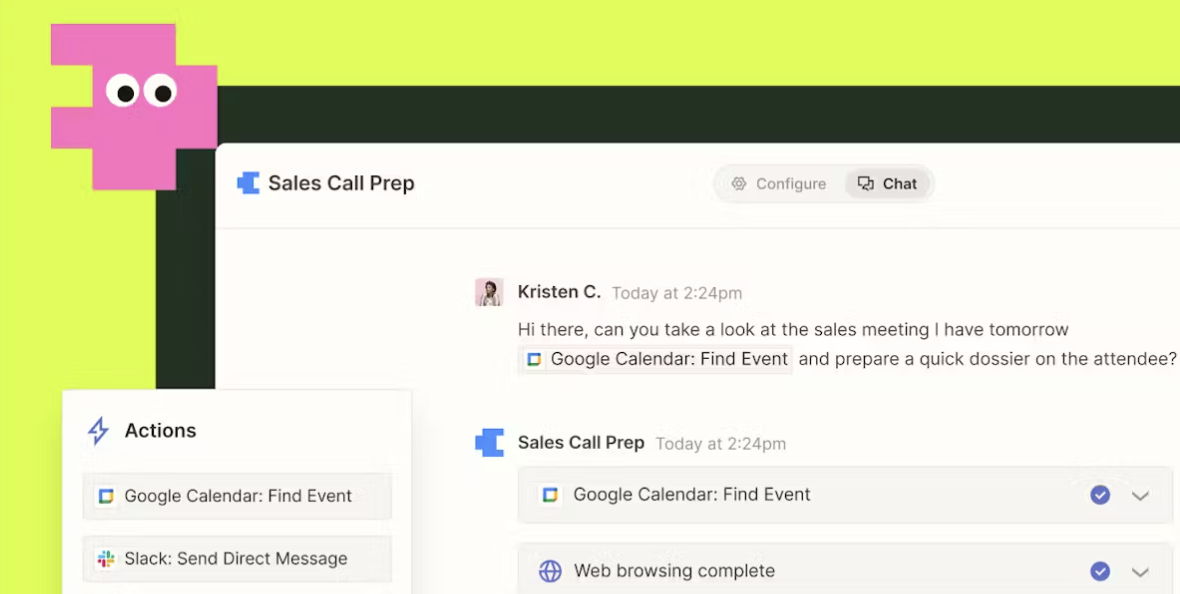 Zapier Agents takes automation beyond simple triggers, letting you create AI-powered assistants that handle complex tasks across 7,000+ apps. These agents can access live data, process information, and take initiative on commands, making automation feel more like an assistant than a static workflow.