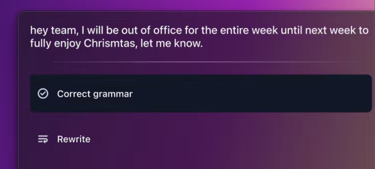 š„ Our take: Most writing assistants feel like a needy coworkerāpopping up, underlining things, and generally getting in the way. GrammarPaw takes a different approach: it waits. No interruptions, no red squiggles, just a quick shortcut when you decide you need help. Feels less like Clippy, more like a good editor who knows when to stay quiet.