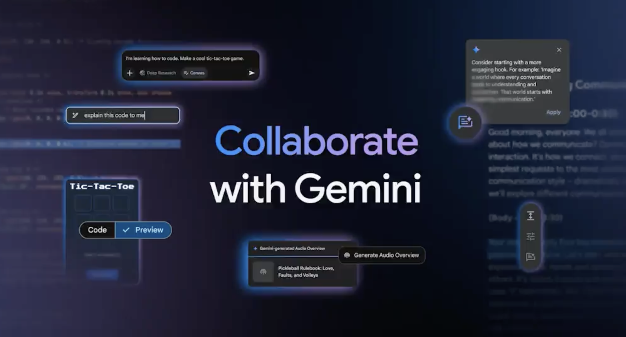 Gemini Canvas is an interactive AI workspace for writing, coding, and brainstorming. It turns ideas into content, generates code, and refines projects in real time, giving users an AI collaborator that actually feels like part of the process.