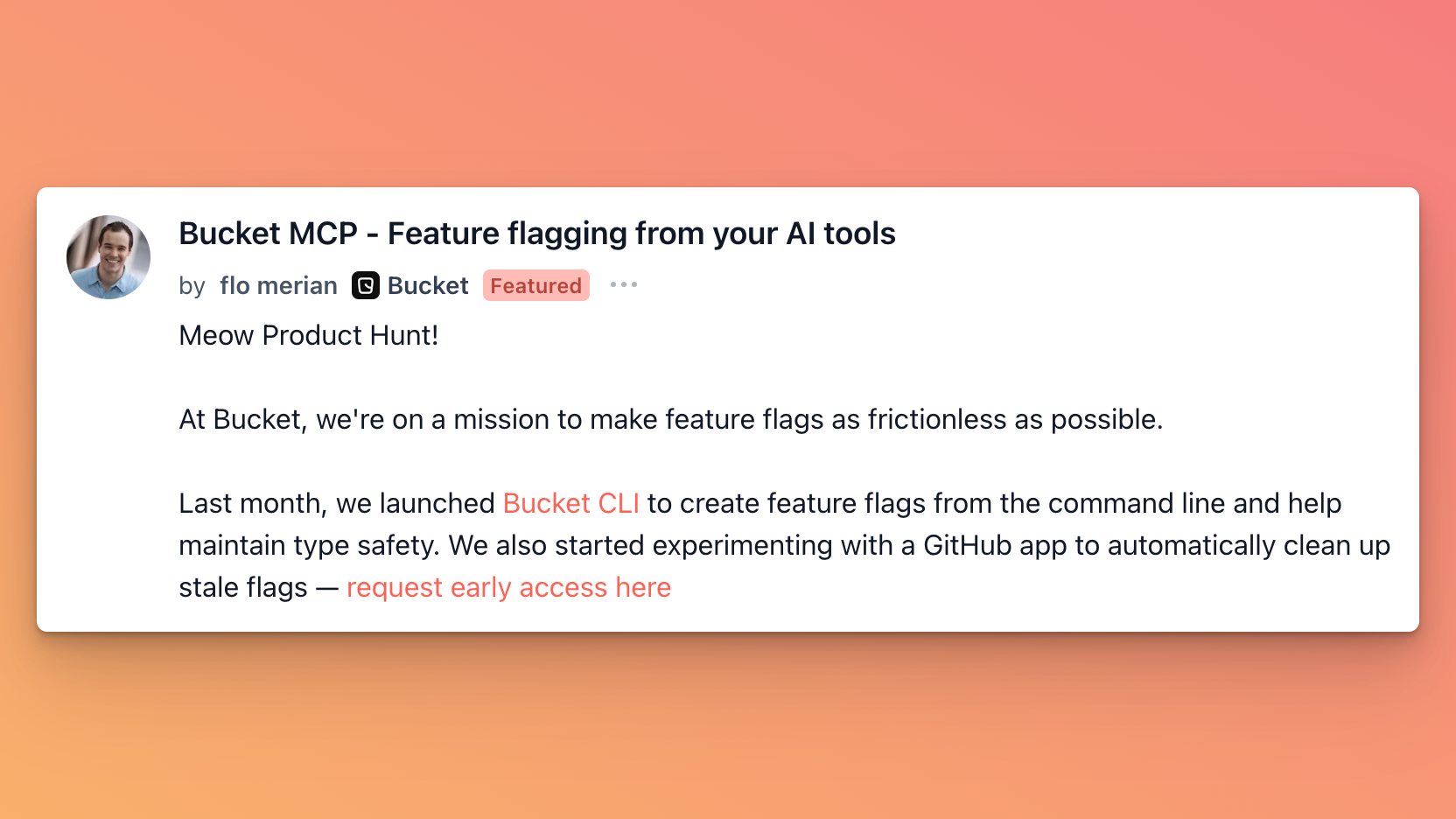 Bucket just dropped something wild: you can now add feature flags from inside your AI coding assistant. Whether you're using Cursor, Augment, or Windsurf, you can just tell it what you want flagged, and the MCP server handles it.