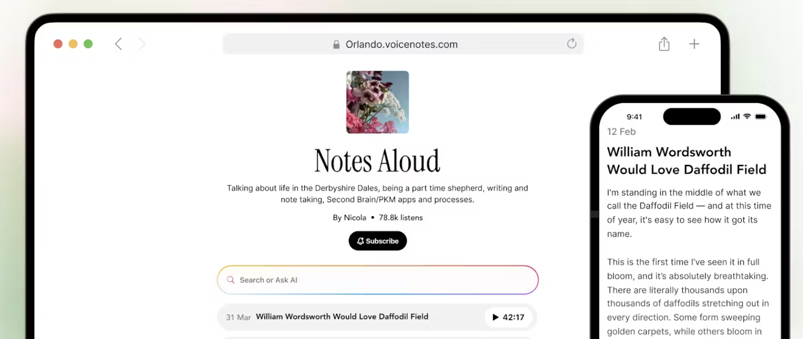 Voicenotes Pages turns your spoken thoughts into public posts. Just record, hit publish, and get a page with audio, transcript, and a link people can share or subscribe to. It’s like a podcast, but with lower stakes and simpler tools.