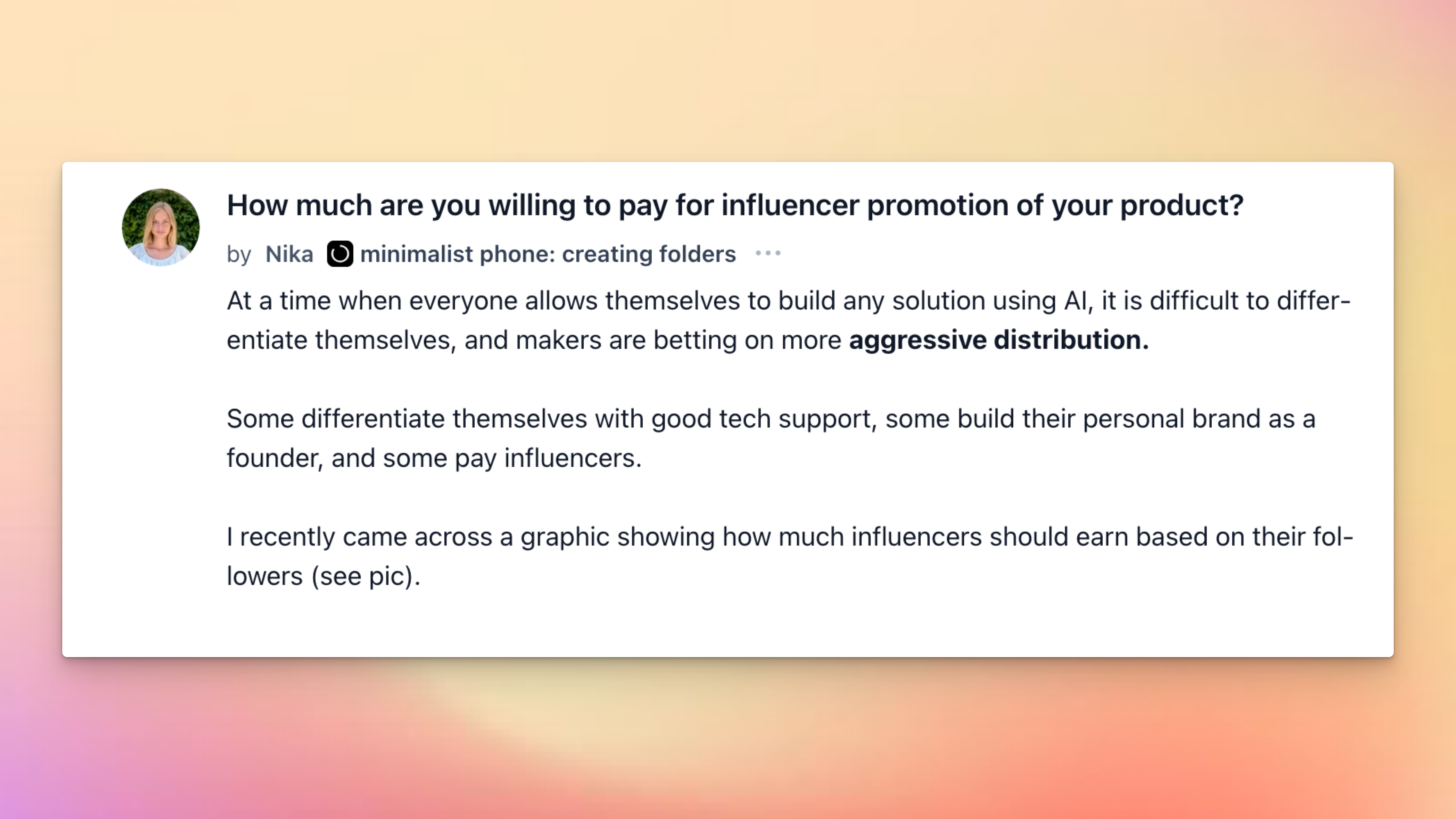 Nika asks: how much would you actually pay an influencer to push your product?