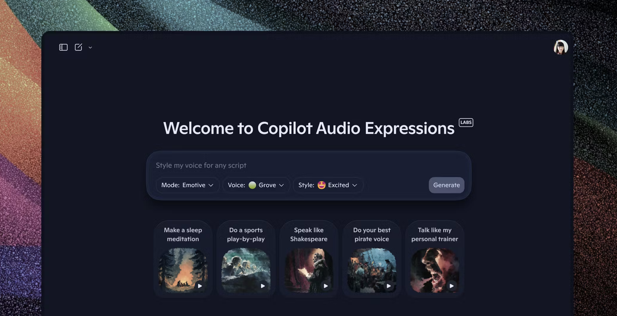 Copilot Audio Expressions turns your text into a clean voice read. Paste a script, pick a voice, choose a style, tweak pacing, then export. It lives in Copilot Labs, so knocking out a podcast intro, product update, or blog readout takes minutes.