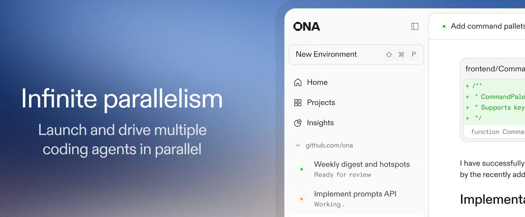 Ona HQ gives you cloud dev environments that spin up instantly. You get sandboxed containers with your exact stack, dev tools, and security rules all preloaded. It adapts to your infrastructure, permissions, and agents that can help scope, review, and even hand off tasks