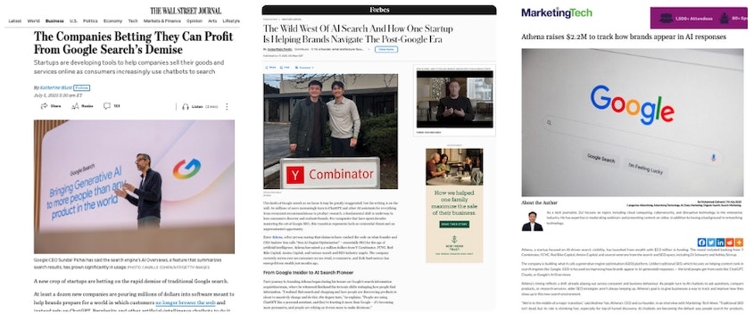 The Wall Street Journal rarely covers seed-stage startups — let alone one raising just $2.2M. That’s why I was surprised to see Athena, an early-stage company working on how large language models surface brand-related content, featured in Katherine Blunt’s article about the demise of traditional Google search.
