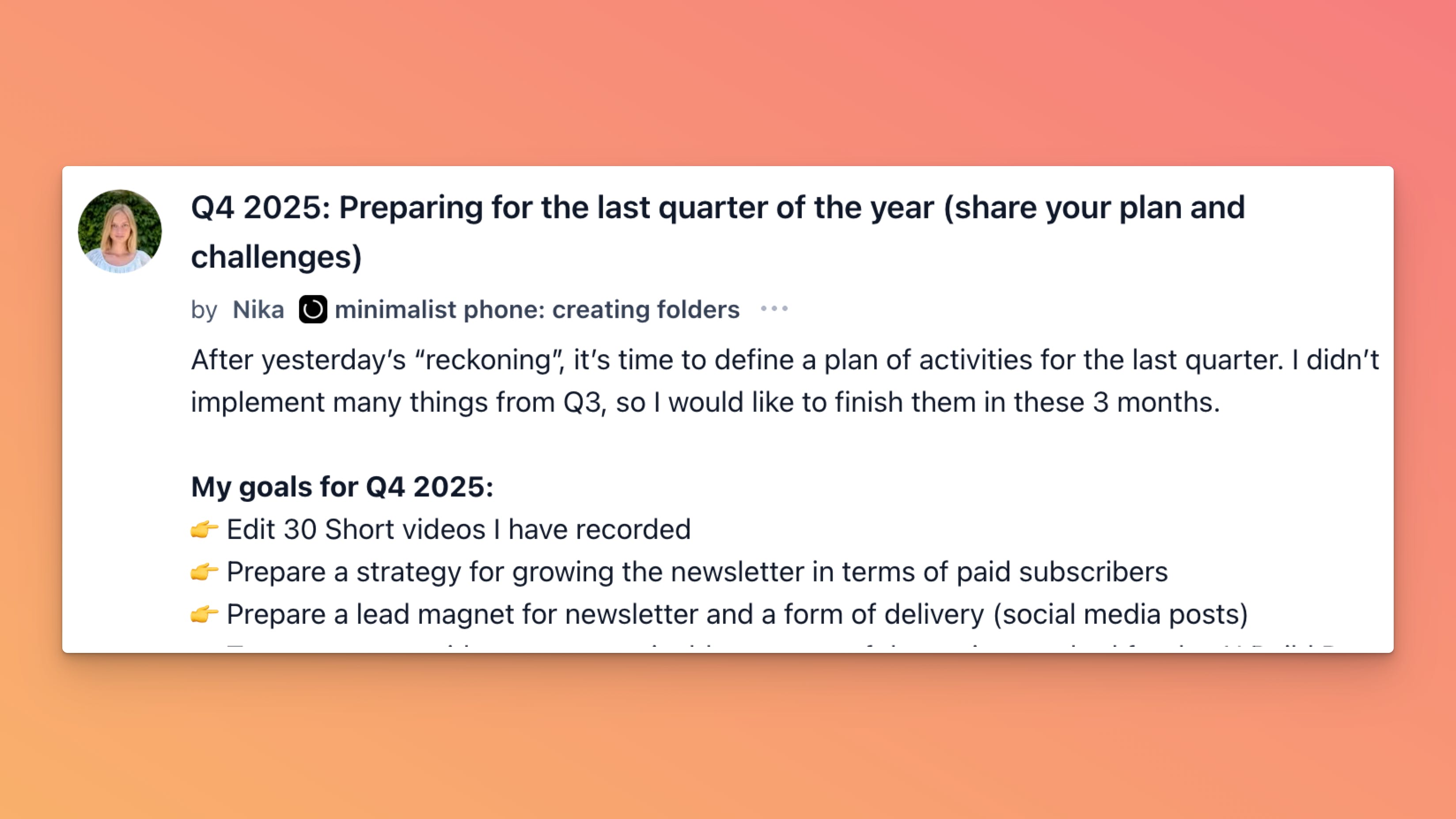 Nika asks: With Q4 looming, how are folks planning to close the year strong—and what roadblocks are you already seeing?