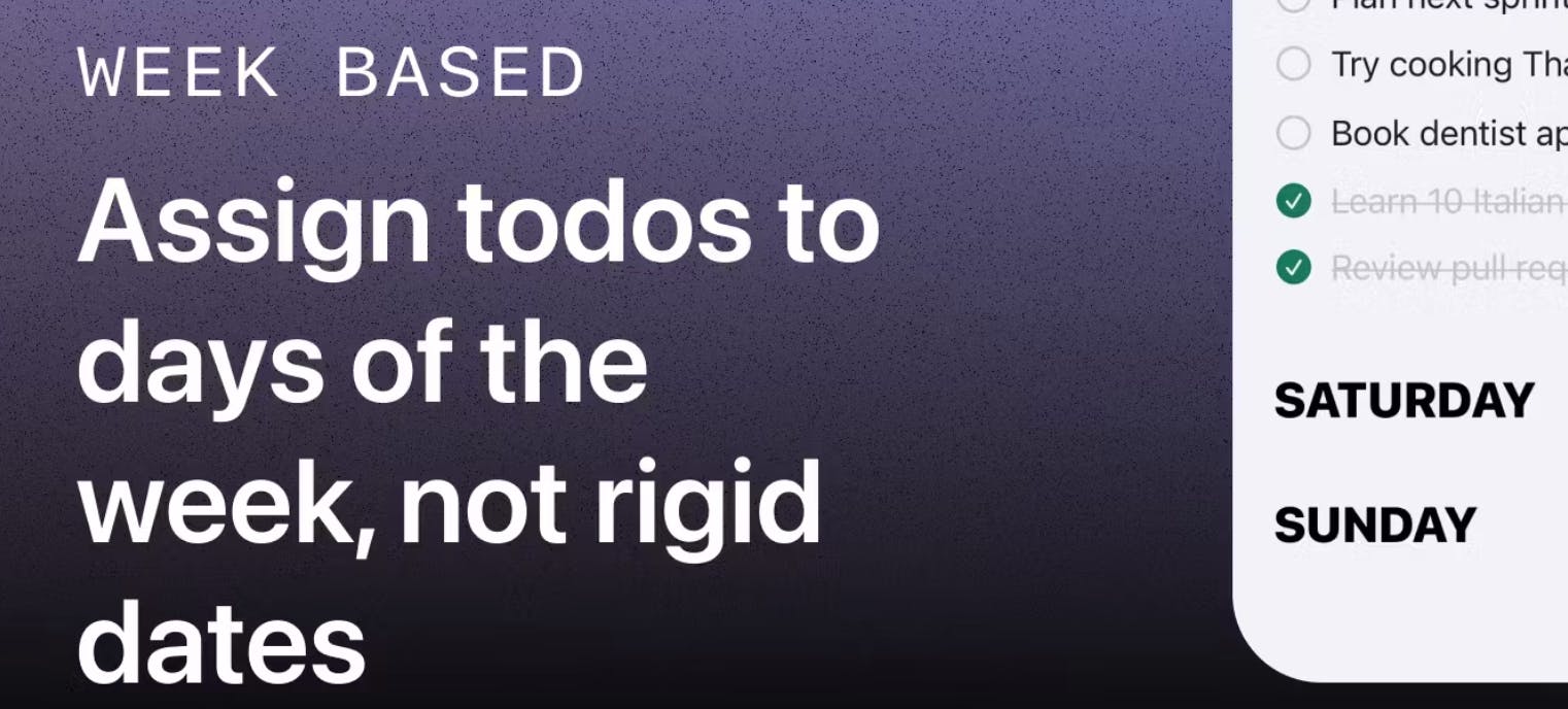 DayDrift helps you plan your week without stress. Instead of rigid deadlines, you assign tasks to days of the week. Missed Monday? It drifts to Tuesday. Its interface is clean, simple, just the tasks you need, laid out across your week.