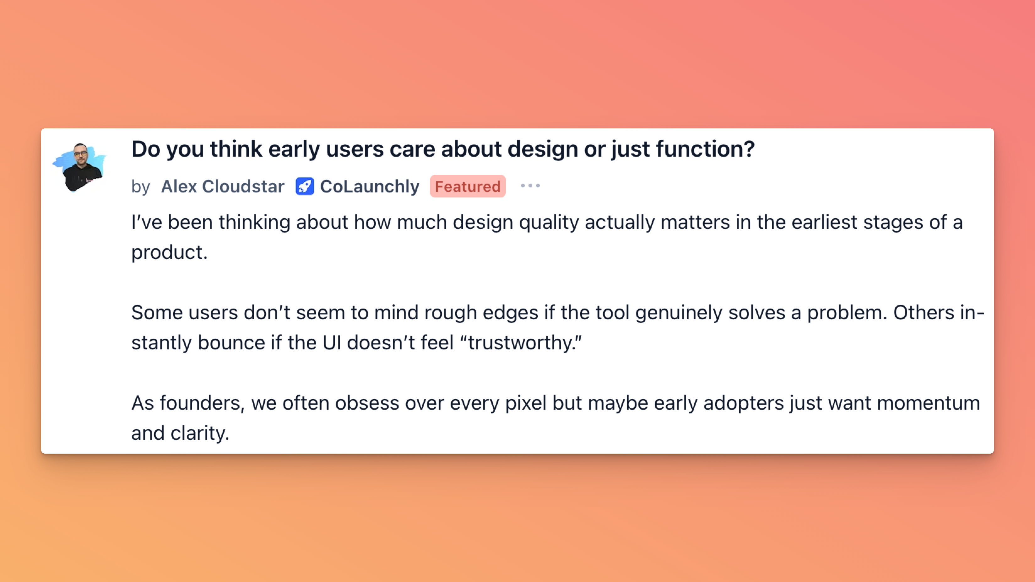 Alex Cloudstar asks: “Do you think early users care about design or just function?”