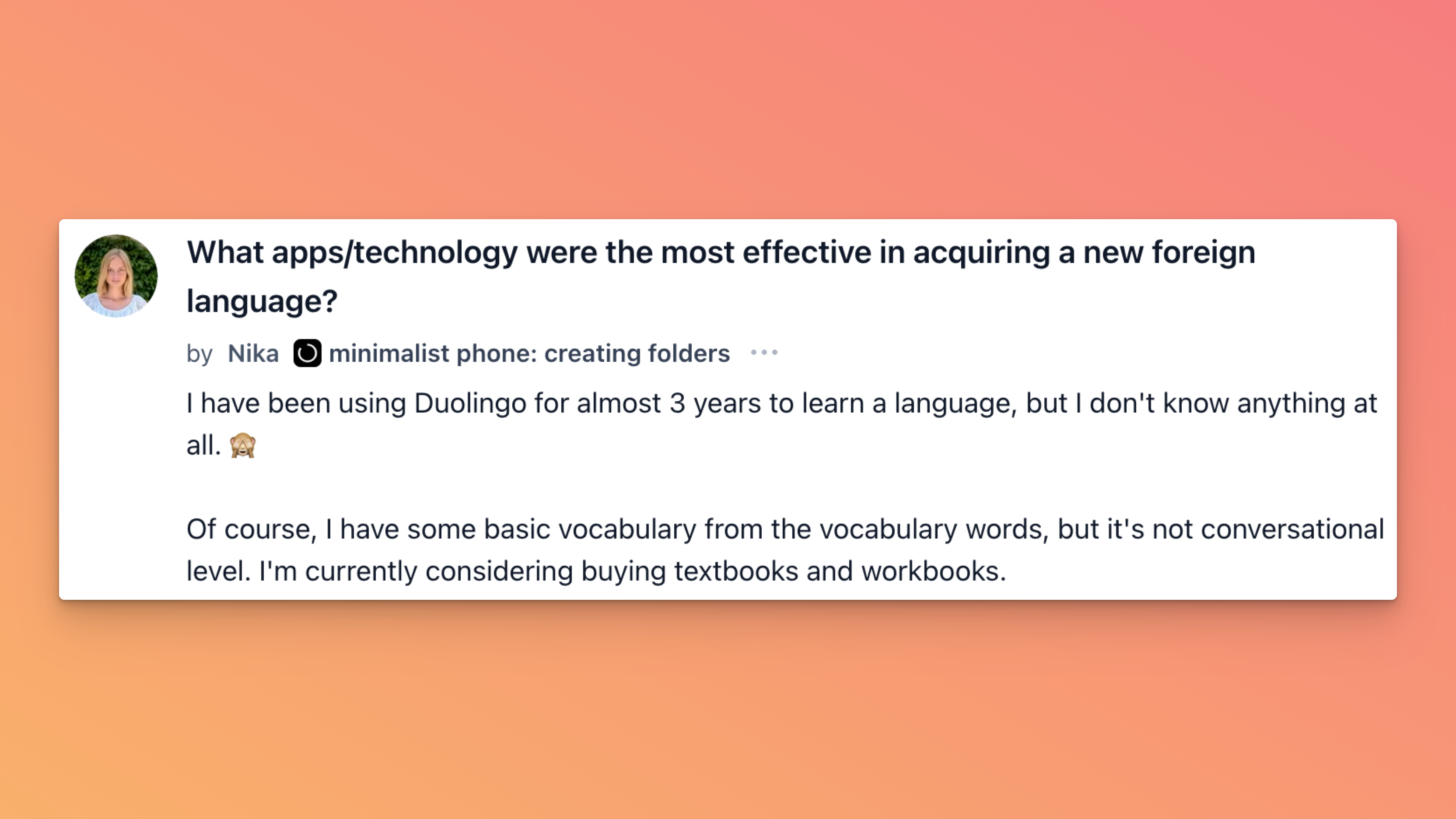 P.S. On the forum, Nika’s three years into Duolingo and still can’t hold a conversation. She’s asking what actually works for learning a new language. Drop your tips.