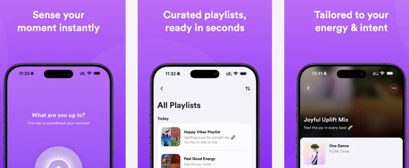 Moodify listens to you talk about your day, then builds a playlist that matches your mood, energy, and what youâre doing, using your Spotify or Apple Music library. Instead of picking from a hundred âfocusâ or âchillâ mixes, you just say where your headâs at and let it sort the tempo, genre, and vibe for you.