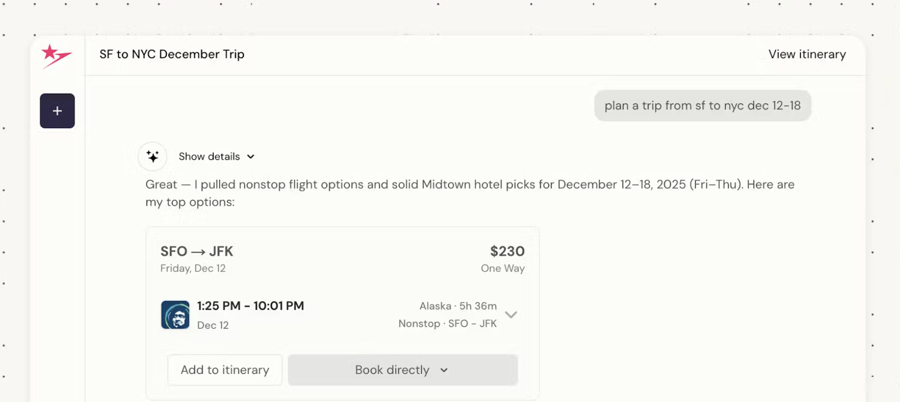 š„ Our Take: Trip planning usually means bouncing between tabs, second-guessing every option, and hoping you didnāt miss something obvious. This cuts a lot of that noise down to a few real choices that fit your schedule and budget, without you rebuilding the trip five times.