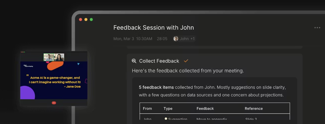 Shadow sits on your Mac and quietly captures both sides of every meeting: what people say and whatâs on screen. No bot joins the call, but you still get transcripts, slides, shared screens and context in one place. From there it can draft follow-up emails, pull out action items, and run custom workflows so you spend less time recapping and more time actually doing the work.