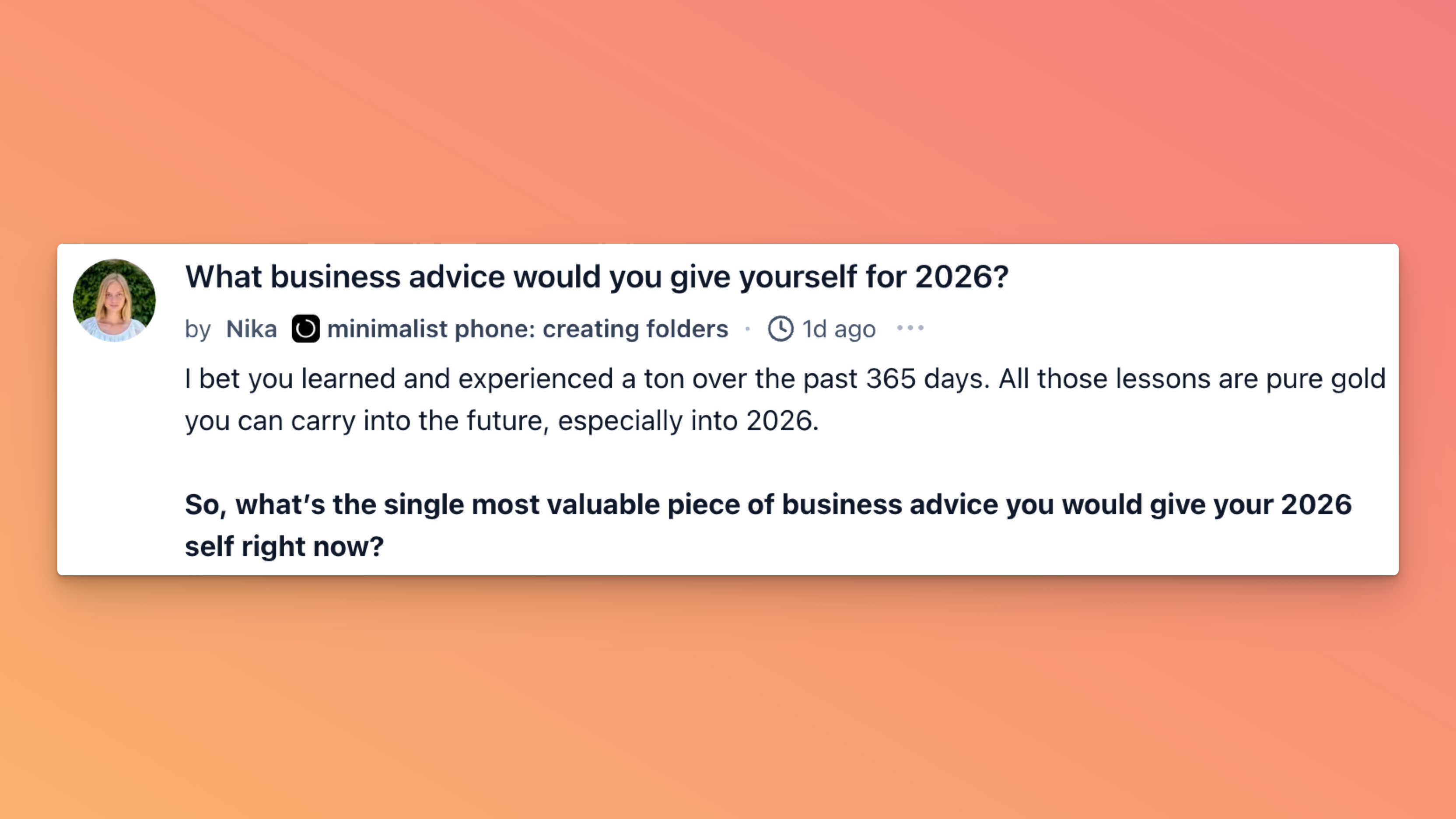 Nika kicked off a thread asking: if you could send one piece of business advice forward to your 2026 self, what would it be? Her own is about not sleeping on LinkedIn as a place where people actually pay, and replies so far orbit the same themes: do fewer things at once, double down on one channel that already works, talk to more people, build community, and sharpen your critical thinking.Â