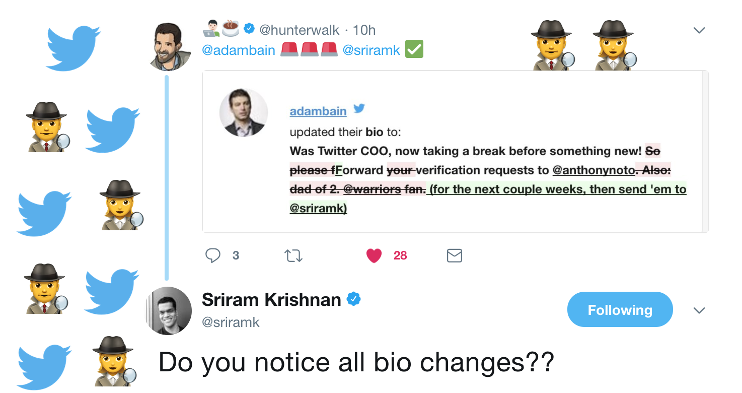 The news made the rounds across Wall Street and Silicon Valley, and kickstarted two equally important discussions: Jack Dorsey's duel CEO role at Twitter/Square, and tracking Twitter bio changes. 🤓