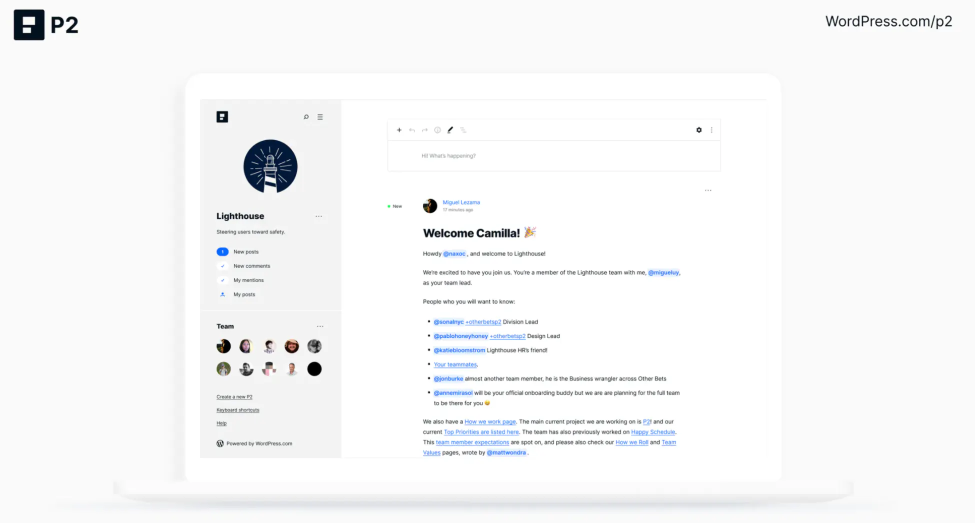 Last week the team at WordPress.com launched their internal remote-team collaboration tool, P2, to the public for the first time.