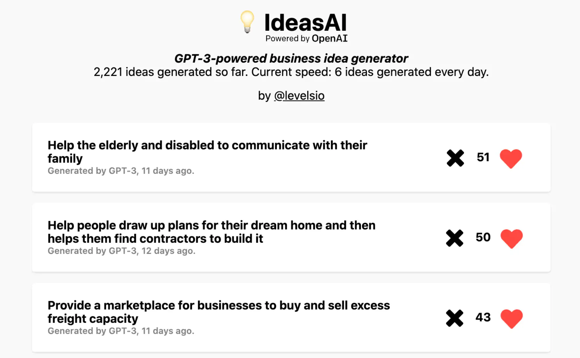 Yesterday, serial maker and Golden Kitty Award Winner, Pieter Levels, launched IdeasAI, a GPT-3 powered startup idea generator.