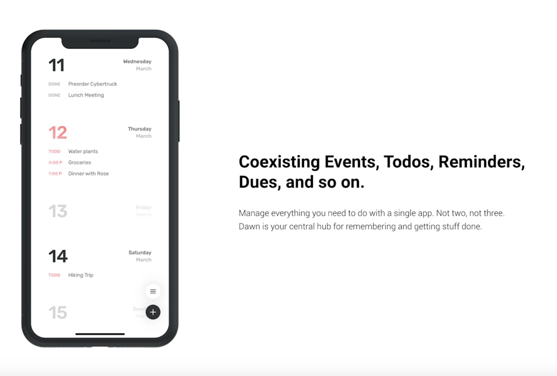 Dawn is the minimal calendar for everything from todos and events to projects and itineraries.