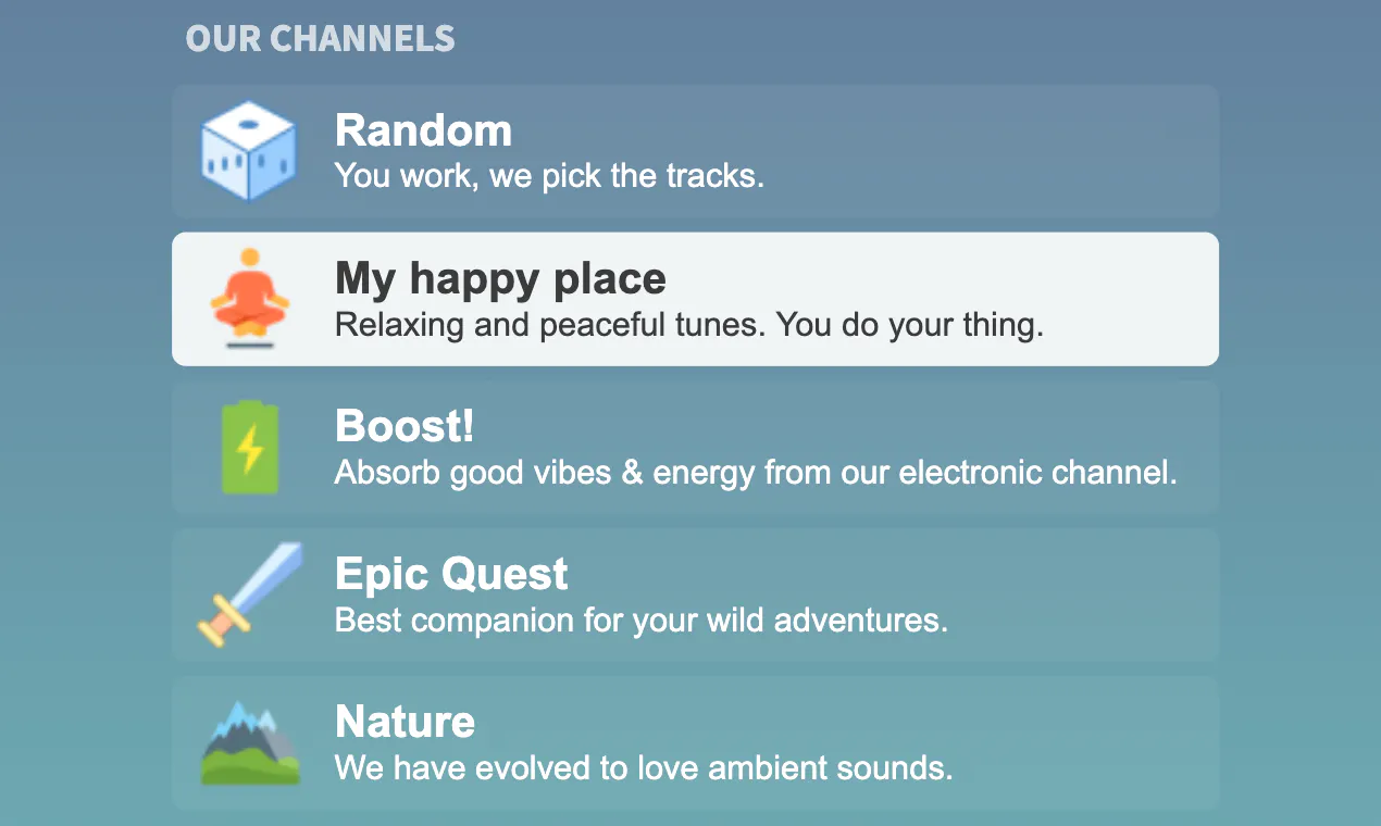 Petr Nagy coded this online radio with 4 different channels streaming handpicked copyright-free music without ads or any annoyances.