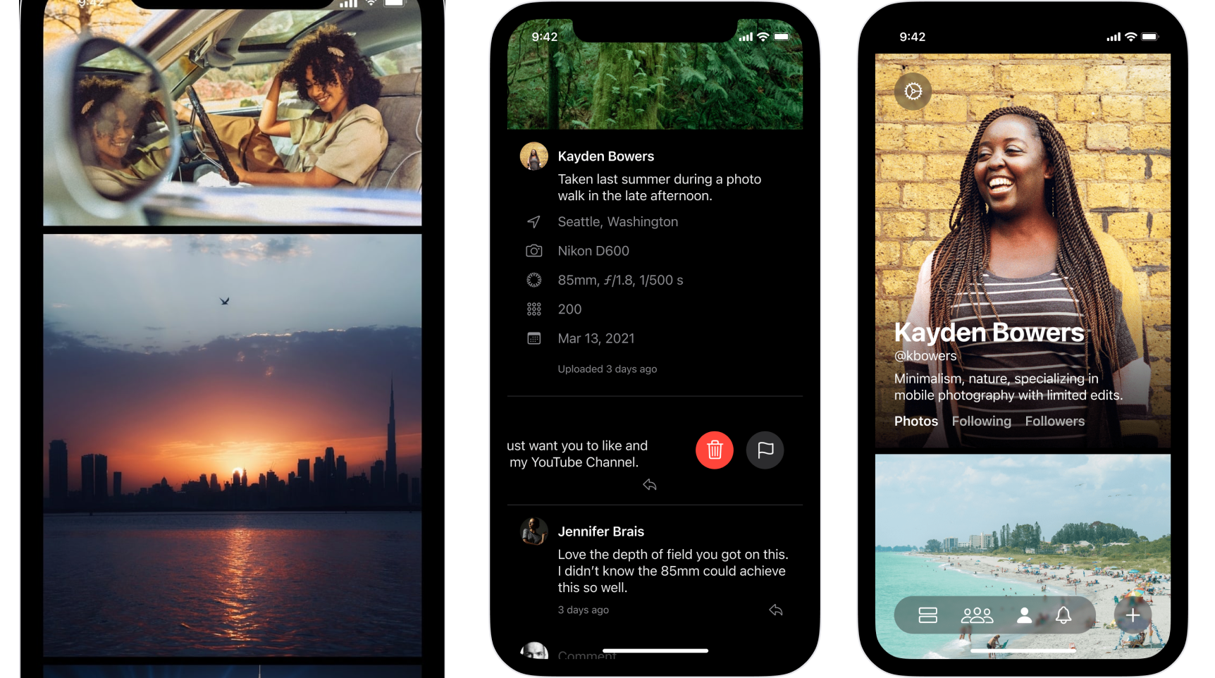 On a features level, Glass also steers clear of public counts (Instagram has been experimenting with this) and engagement algorithms. Photographers will be excited by things like P3 color profile support, minimal compression, and EXIF data behind your photos.