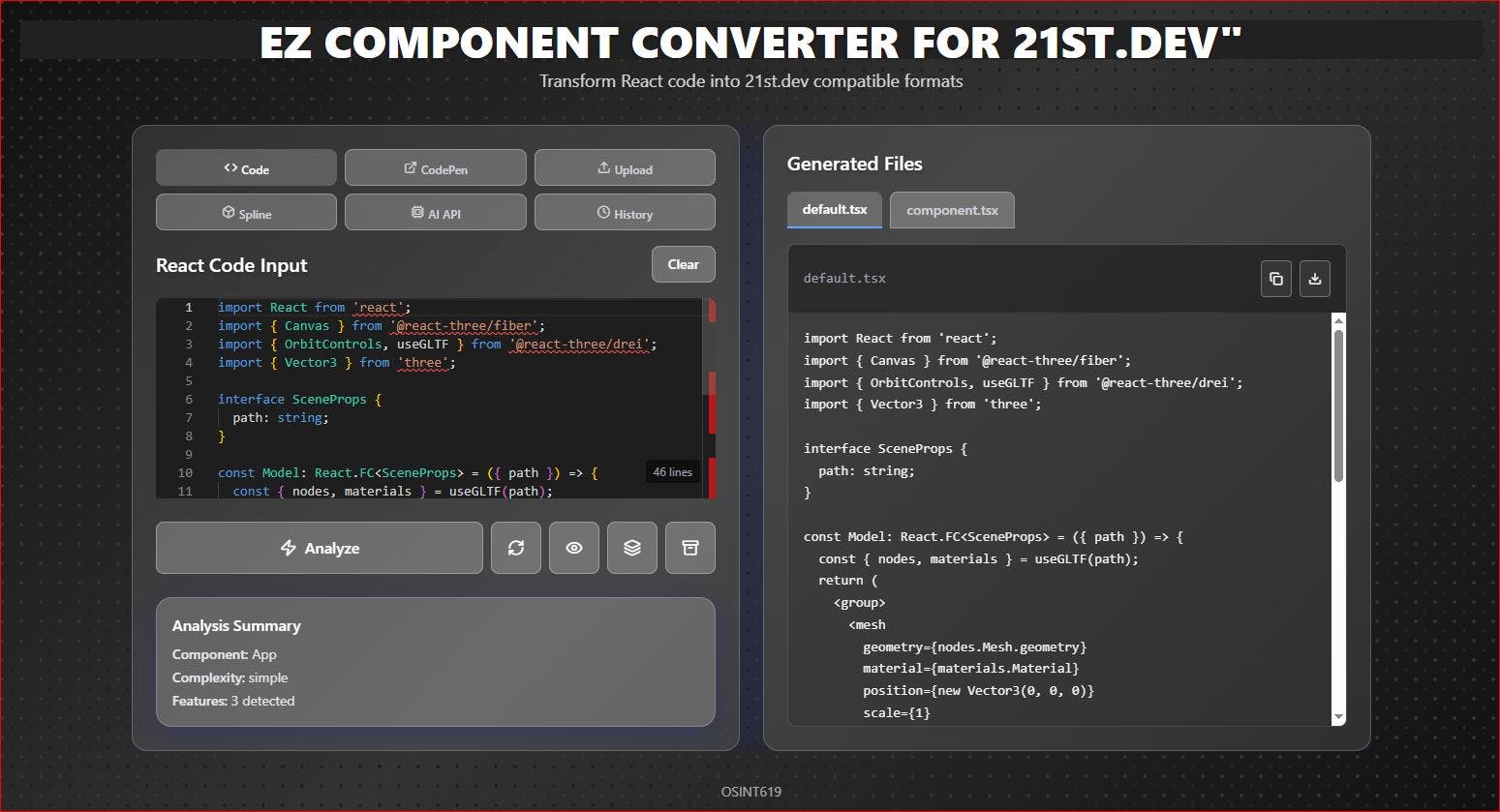 I like 21st.dev and have been using it for a while now. Pushing components into your library can be a headache at times. Especially for those who are new to coding or build in something other than typescript and tailwind. The structure required is extremely specific in terms of file types and naming conventions for components to function correctly within the environment. I ended up making a tool that is specific for this so it would make my life easier. I either connect an API, upload files, manually paste, upload links, and it will convert the code into the component.tsx and default.tsx files I need in order to push to your library. If I had one thing I'd want to change about 21st, it'd be that. Otherwise, killer website. Proud of what you made!